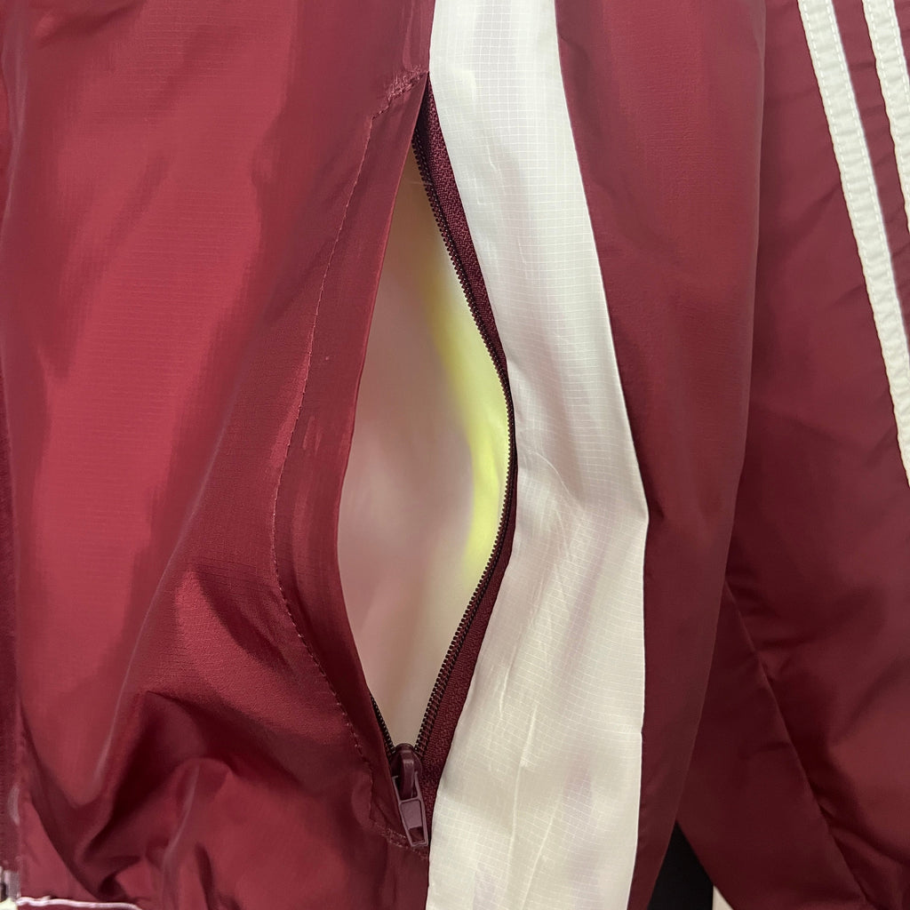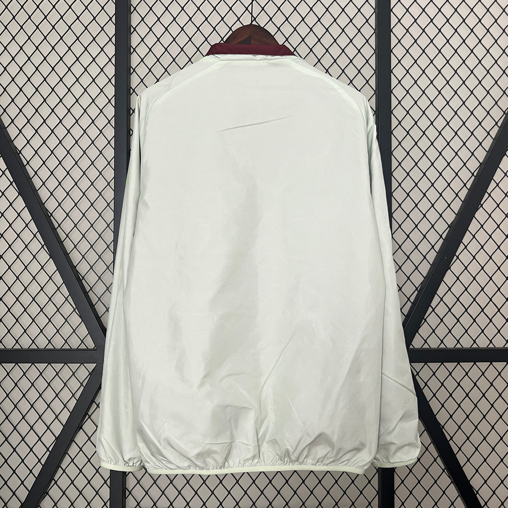 El escudo estampado en el pecho contrasta con el elegante diseño de la cazadora.